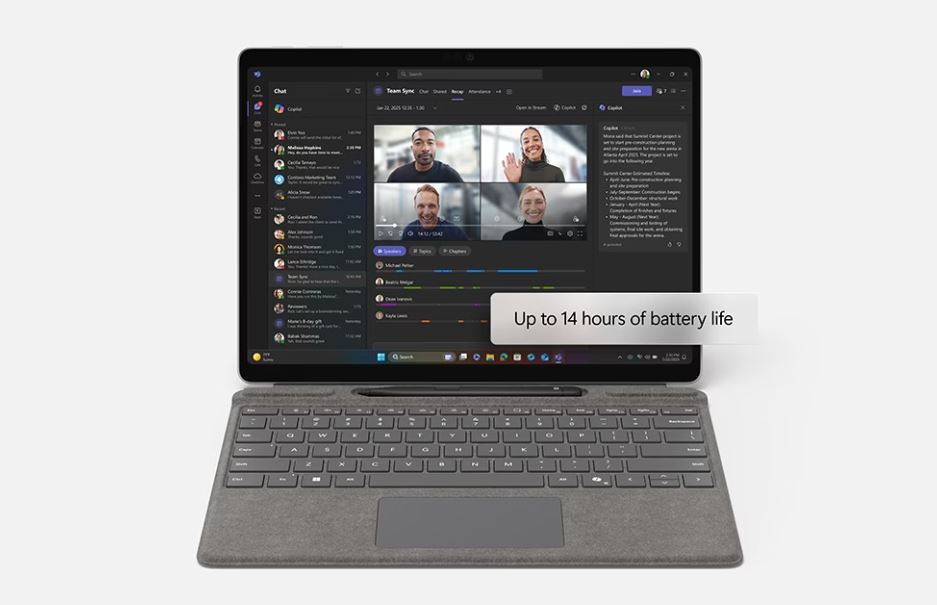 Surface Pro je vždy připravený pracovat podle požadavků vašeho týmu a po celý den se dokáže přizpůsobovat jejich měnícím se potřebám.