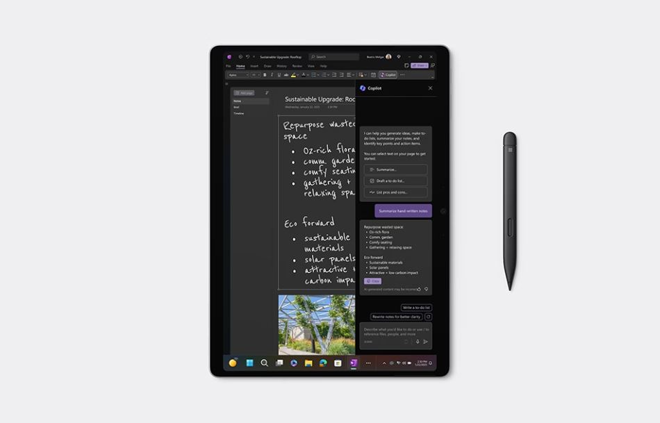 Vytvářejte pomocí písma, hlasových příkazů nebo pera Surface Slim Pen koncepty a proměňte své nápady na vizuální prvky za použití pokročilé umělé inteligence.